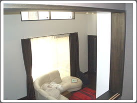和室から見下ろすリビングルーム 天井が高いのがわかります